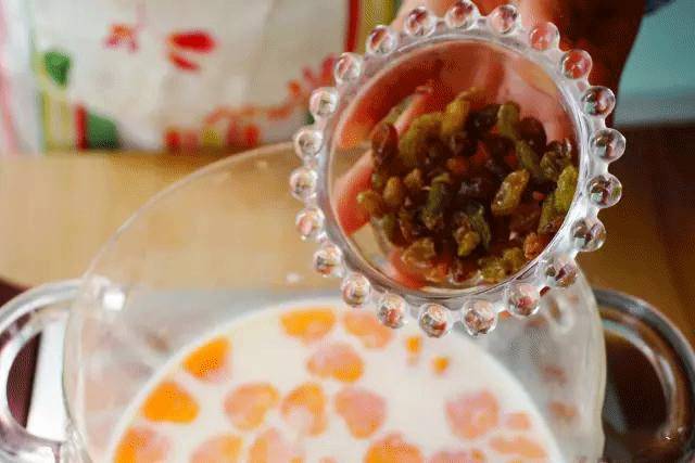 ⑨ 将葡萄干清洗干净,也放入汤锅(1岁内可不放);